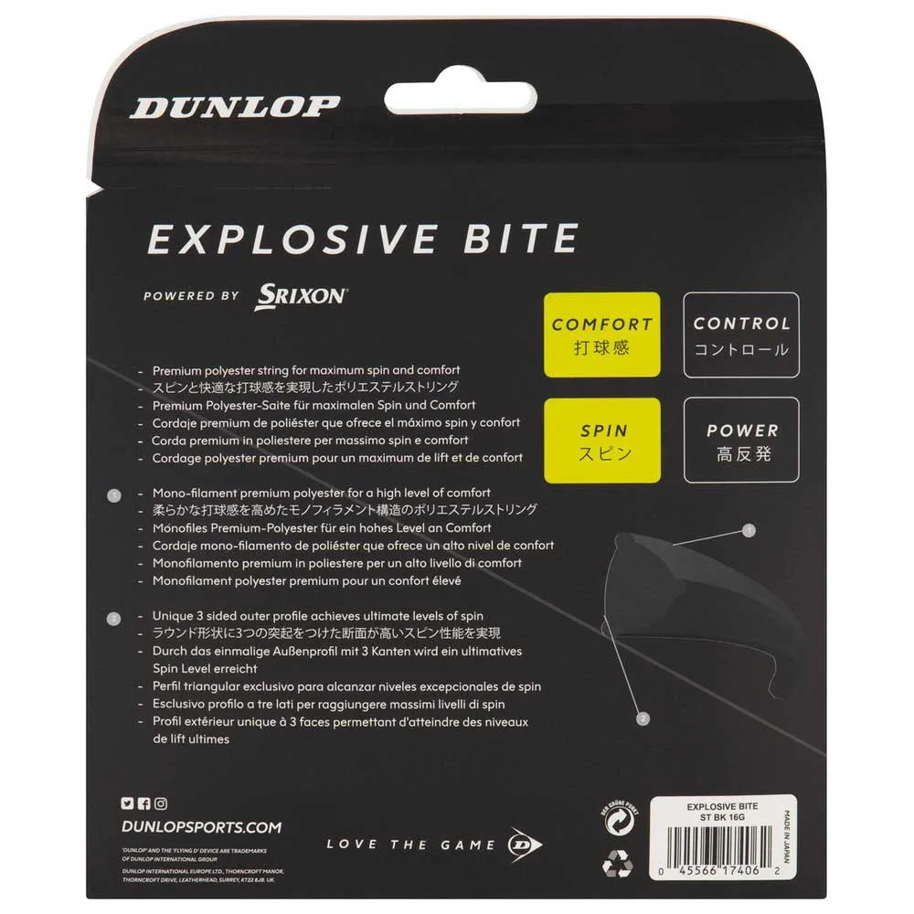 Premium polyester string for maximum spin and comfort. Mono-filament premium polyester for a high level of comfort. Unique 3-sided outer profile achieves ultimate levels of spin.